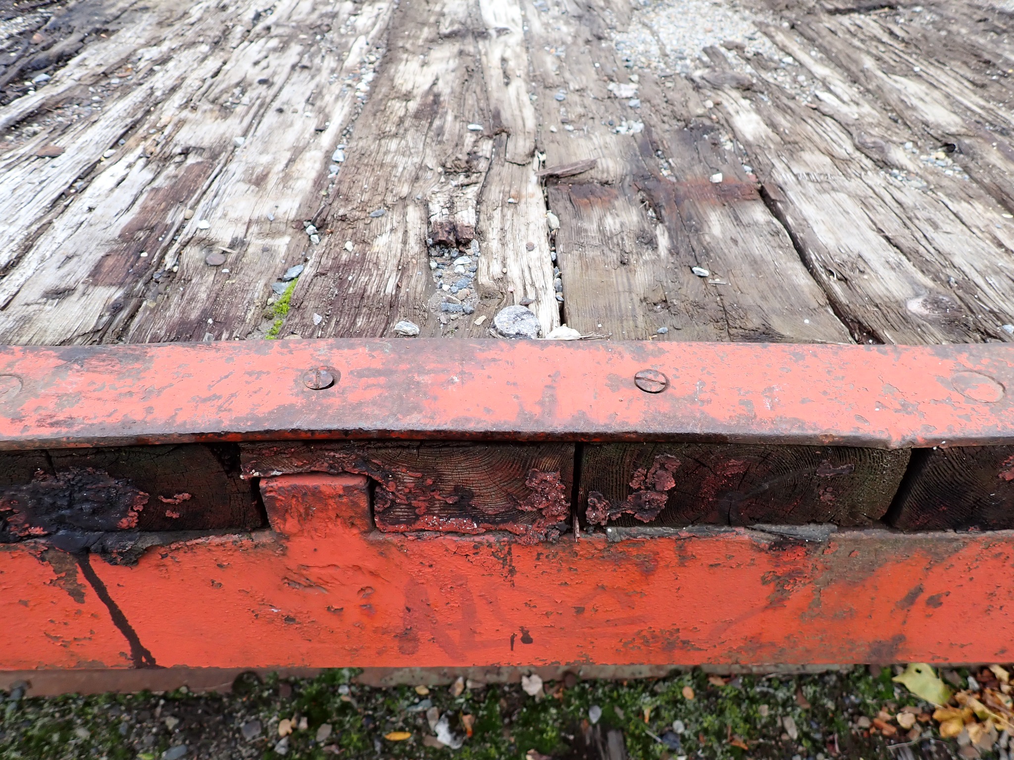 Skruene er med slissespor, 40 mm lange og 7 mm diameter. I tillegg ca 80 mm lange bolter med flatt hode og diameter ca 12mm.